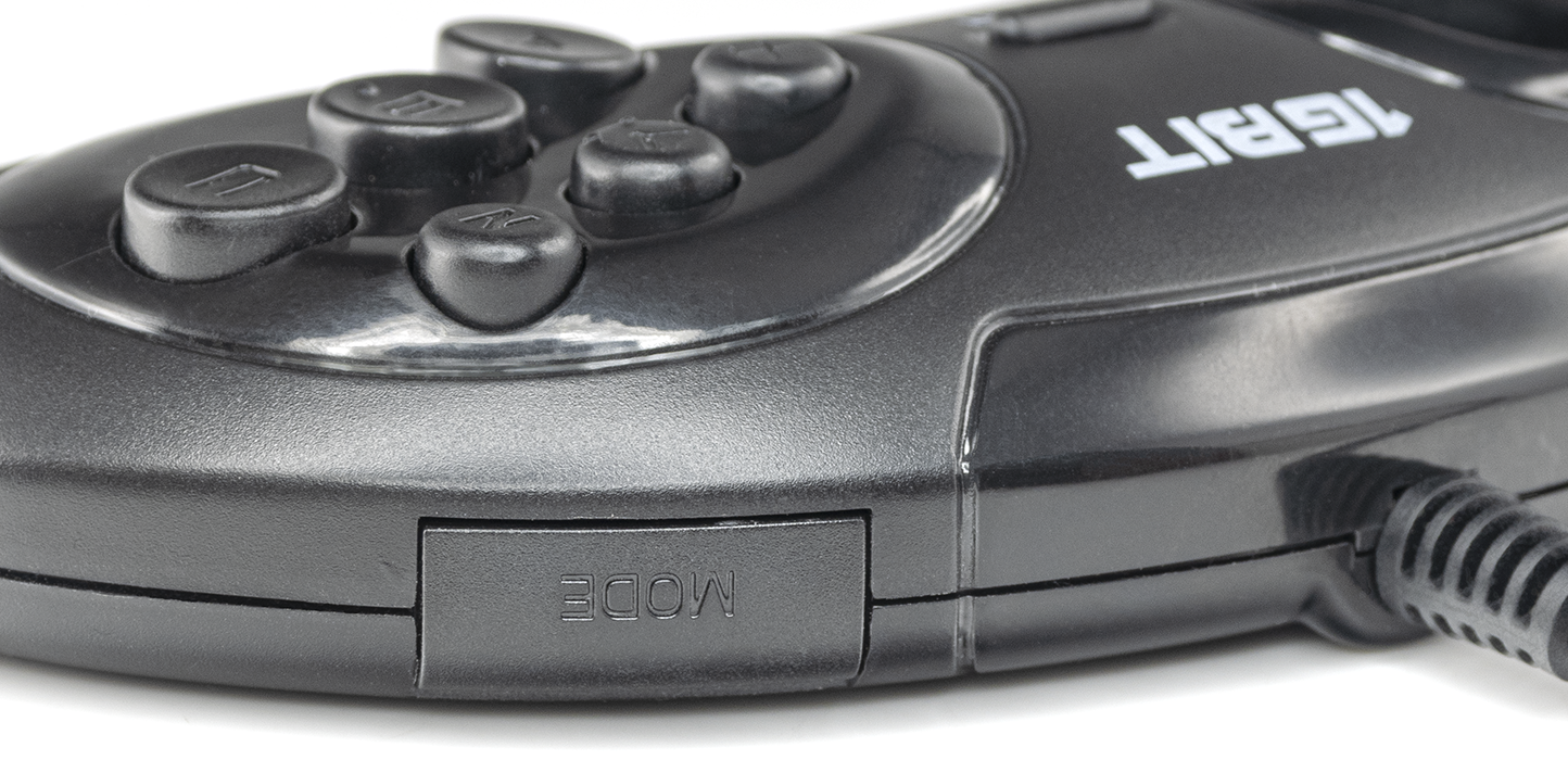 Комплектуется классической надежной D-Pad крестовиной, кнопкой Start, 6-ю кнопками действия и кнопкой Mode на торце контроллера.