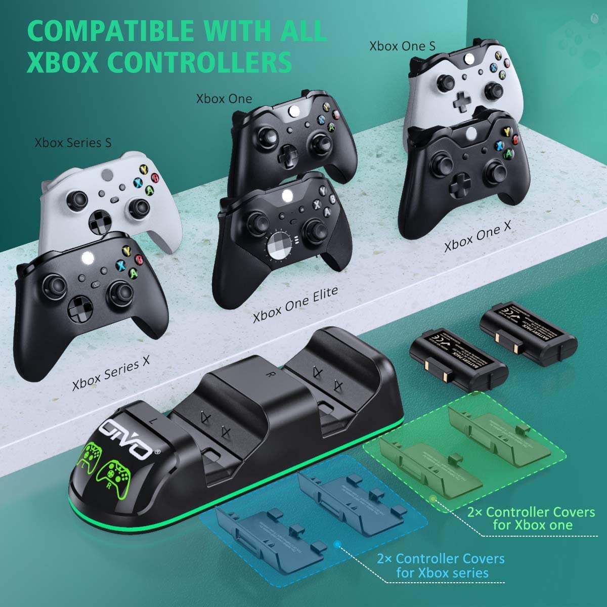 • Зарядная станция Xbox Series S/X - Xbox One Charging Dock + 2 АКБ 1300 mAh Black IV-X131 OIVO